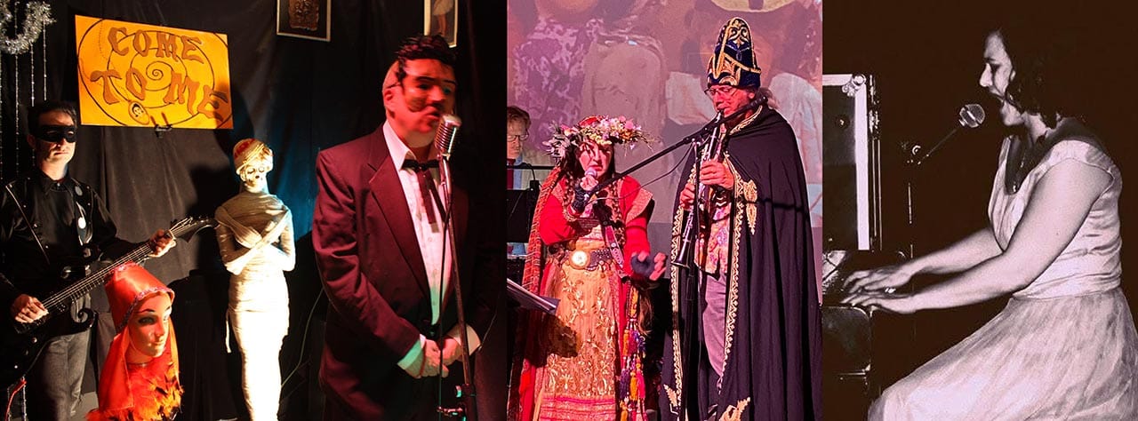 Victoria Victrola (she/her) is the front woman of Victoria and the Vaudevillians. She throws the occasional whimsical boozy tea party, the occasional séance, owns 3 Victrolas, surprisingly zero cats, and never enough books. You can often find her standing still, falling down stairs, and pounding on the piano. Her music ranges from soft and whispery to clangy bangy piano rock. She is, much to her own disappointment, not the author of Sweet Valley High.